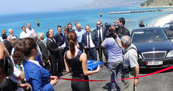 阿爾巴尼亞總理薩利.貝里沙與廖世明董事長一起,參加SASAJ水電站運行啟動儀式剪彩并握手談話。薩利.貝里沙總理高度評價由我公司提供的2x4300KW沖擊雙噴嘴水輪發(fā)電機組,全自動化程度高,運行穩(wěn)定,并歡迎我們公司今后能向阿爾巴尼亞提供更多的水力發(fā)電設備。