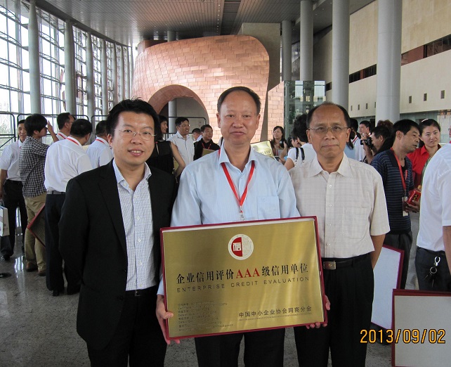 董事長廖世明先生參加在北京國家會議中心、我司被授予“3A級網(wǎng)商信用企業(yè)”的榮譽稱號,并得到了中國中小企業(yè)協(xié)會信用管理中心領(lǐng)導(dǎo)的高度評價和贊許。